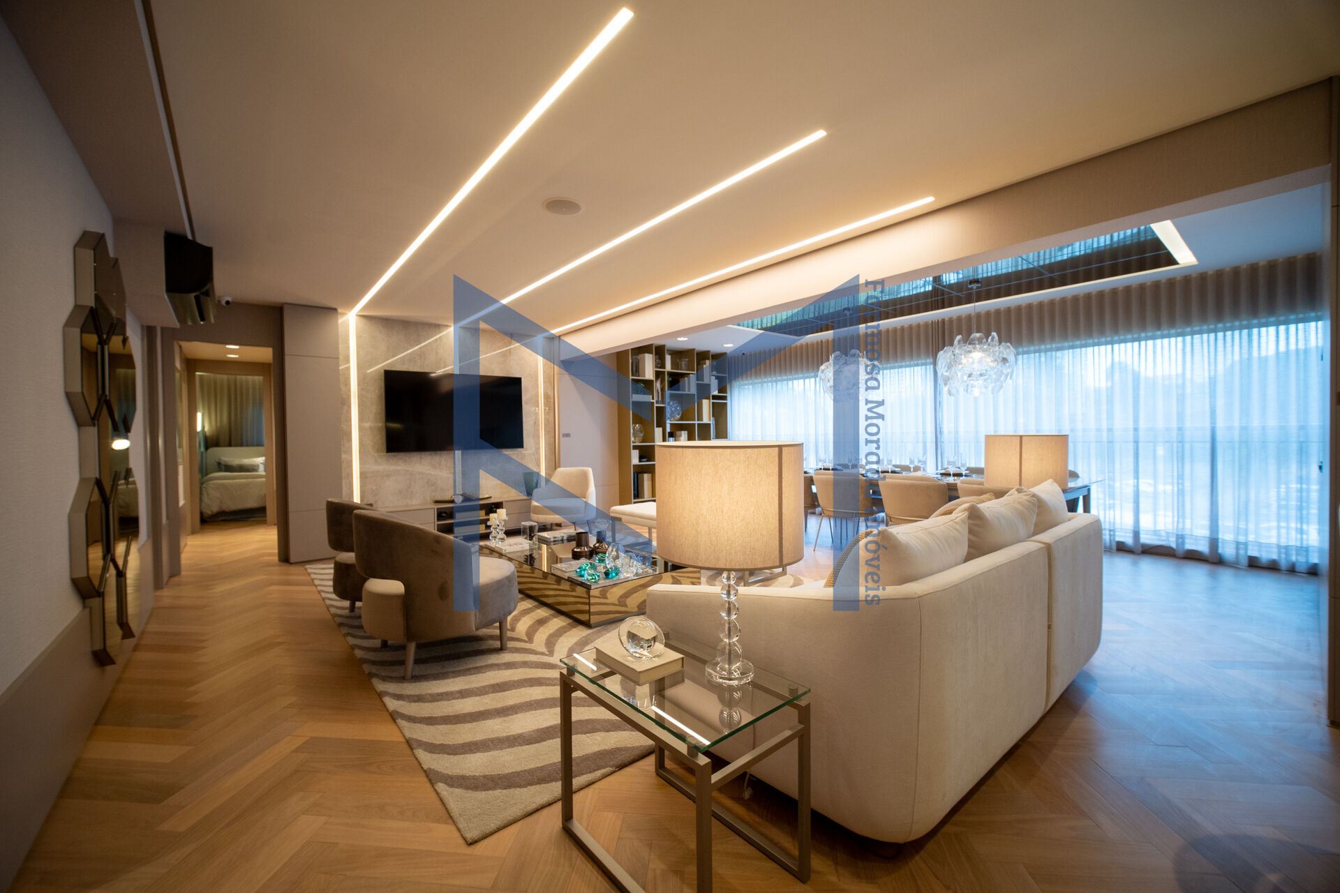 São 139m² distribuídos em três dormitórios sendo os 3 suítes, sala de estar, cozinha ampla, área de serviço, varanda gourmet e duas vagas de garagem.