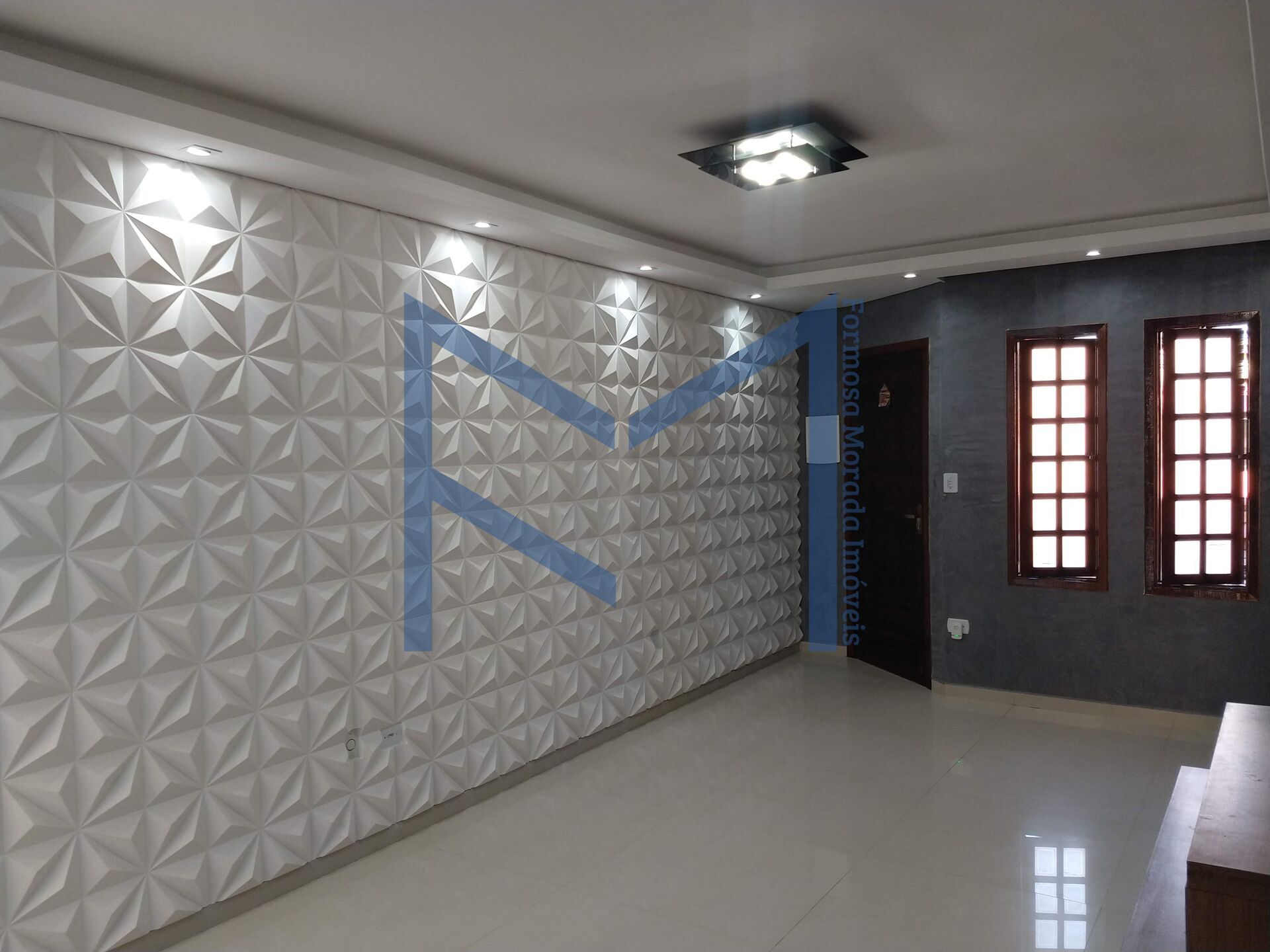 Sala ampla com sancas e parede em 3D e com Home Fixo , lavabo ,cozinha planejada com Cooktop, microondas e forno elétrico, com balcão estilo americano, jardim de inverno e área de serviço.
